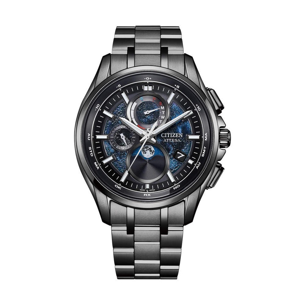 Orologio Citizen Attesa HARUTO-R BY1008-67L LIMITED EDITION nuovo modello frutto della collaborazione con Ispace protagonista del programma lunare HAKUTO -R, quadrante con inchiostro testurizzato, evoca la superficie lunare e le sue asperità , mentre il design solido e dinamico riflette il progresso dell innovazione tecnologica tipica di Citizen. Ogni orologio ha un lunar Program, che calcola le fasi di luna in base ai segnali ricevuti.