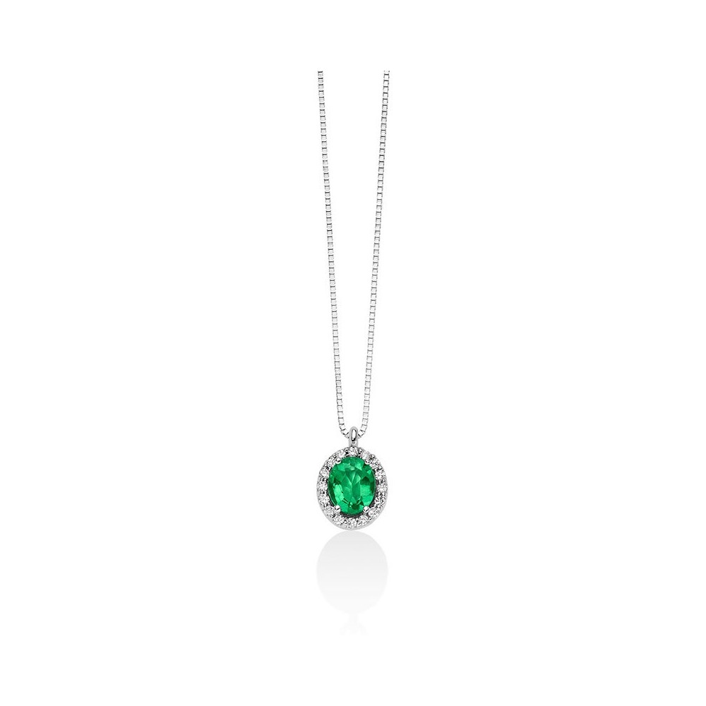 Collana con smeraldo ovale e contorno di diamanti in oro bianco - CLD4094